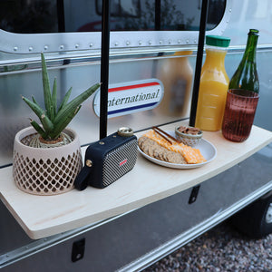Whether you're hosting a small gathering or settling in for a quiet evening under the stars, the Party Ledge turns your window into a convenient space for entertaining. With plenty of room for drinks, small bites, lighting, or everyday essentials, it adds an easy layer of function to your Airstream setup.
