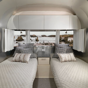 Add color, style, and personality to your Airstream travel trailer's interior décor with our Custom Replacement Curtains and matching pillows and placemats. Hand-made by experienced associates from Airstream's in-house sewing department, our curtain packages are easy to install in a few simple steps. Choose from six different fabric patterns and a variety of coverage packages custom-made to perfectly fit your windows.