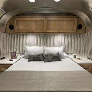 Currently available for Bambi, Caravel, Flying Cloud, and International model lines, our curtain packages are made by hand and can take 4-6 weeks for production after you place an order. We're working to add more model lines in the coming months.