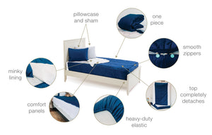Our Beddy's sets come in their popular Minky option, where the underside of the top comforter has a cozy sewn-in minky blanket.
