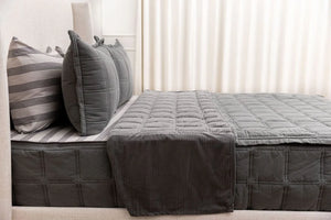 This quilted dark gray bedding is equal parts beautiful, comfortable, and convenient.