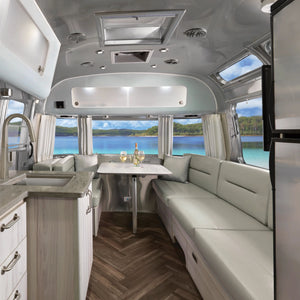 Add color, style, and personality to the interior décor of your Airstream International with our Custom Replacement Curtains. Hand-made by experienced associates from Airstream's in-house sewing department, our curtain packages are easy to install in a few simple steps. Choose from ten different fabric patterns and a variety of coverage packages custom-made to perfectly fit the windows of your International.