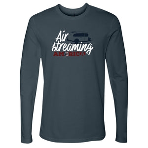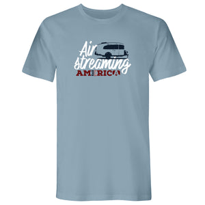 Celebrate the freedom of the open road and the pride of the stars and stripes. This indigo long sleeve tee features a bold “AirStreaming America” design with a Basecamp Travel Trailer and patriotic flair. Soft, comfortable, and perfect for cool evenings or everyday adventures.