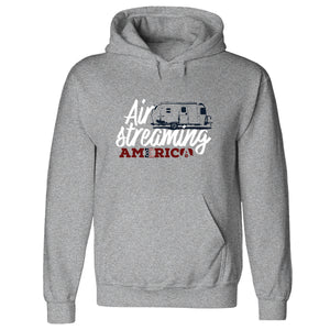 Wrap yourself in comfort and patriotic spirit. This hoodie features the “AirStreaming America” design with a Travel Trailer and stars and stripes—perfect for celebrating your love of adventure and the open road. Soft, cozy, and ready for cool nights under the stars.