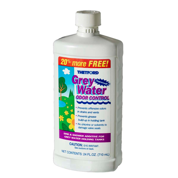 The Grey Water Odor Control is a sink and shower additive for grey water holding tanks. Preventing offensive odors in drains and vents, this liquid also stops grease build-up. In order to protect valve seals, this product contains no chlorine or solvents.
