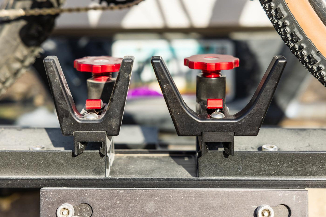 When hauling heavier bikes or heading off-road, the Wheel Chock adds an extra layer of stability. It securely cradles the back of your front tire to reduce steertube rotation and minimize unwanted bike movement.