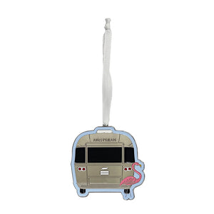 Celebrate those times when you've slept under pine trees or palm trees with this cheery glass ornament on your Christmas tree.
