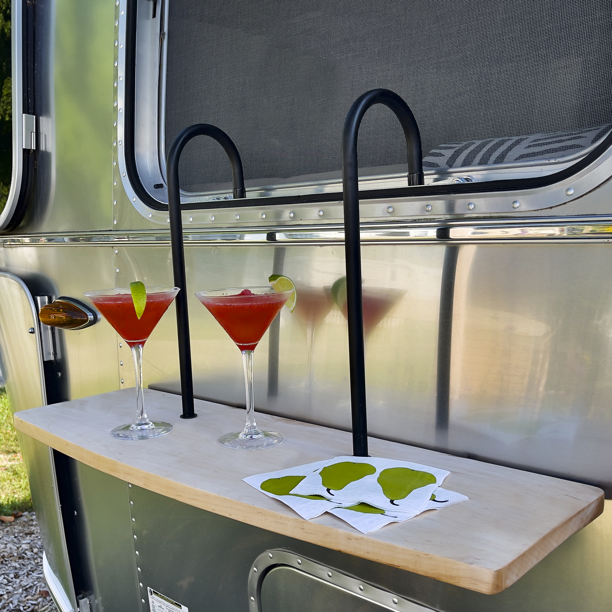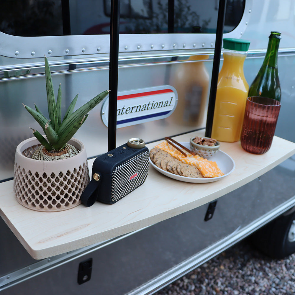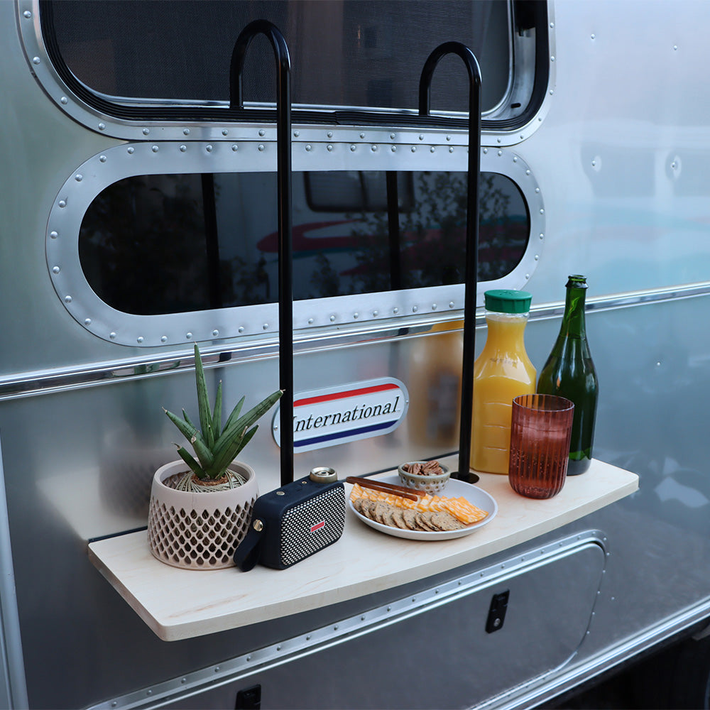 Your fellow Airstreamers are finding it's the perfect spot to hold drinks, snacks, charcuterie, portable lighting, candles, speakers, device chargers and more. Whether you're hosting an intimate gathering or enjoying a quiet evening under the stars, the Party Ledge transforms your window into a functional entertaining hub. Its depth accommodates everything from cocktail glasses and appetizer boards to ambient lighting and tech essentials, making it an indispensable addition to any Airstream owner's entertaining setup.