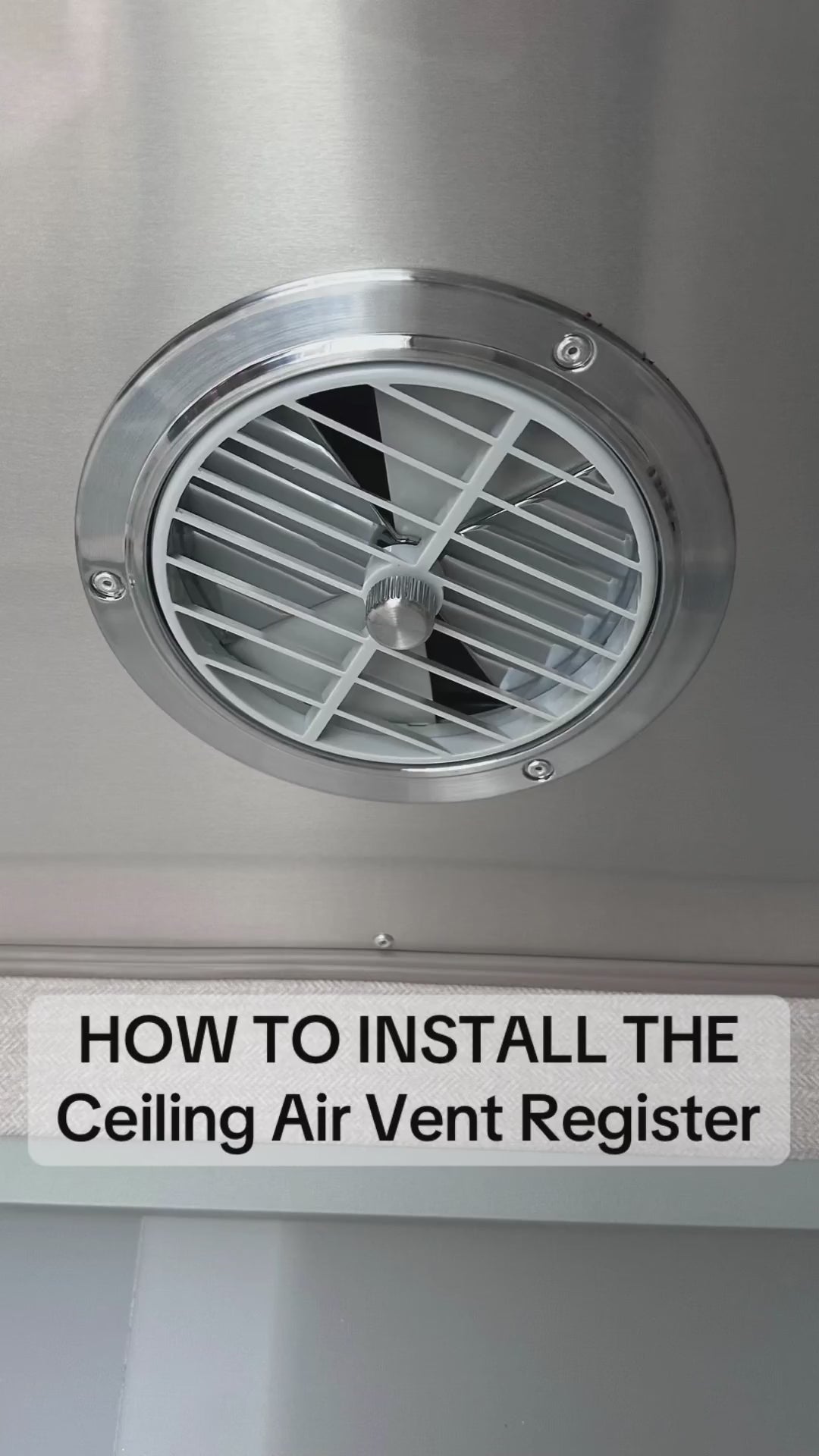 This louvered ceiling air vent register is designed specifically for Airstream travel trailers. Made from chromed plastic, it provides smooth, adjustable airflow throughout your interior. The center turn knob lets you control airflow intensity, while the directional louvers allow you to aim air where it’s needed.