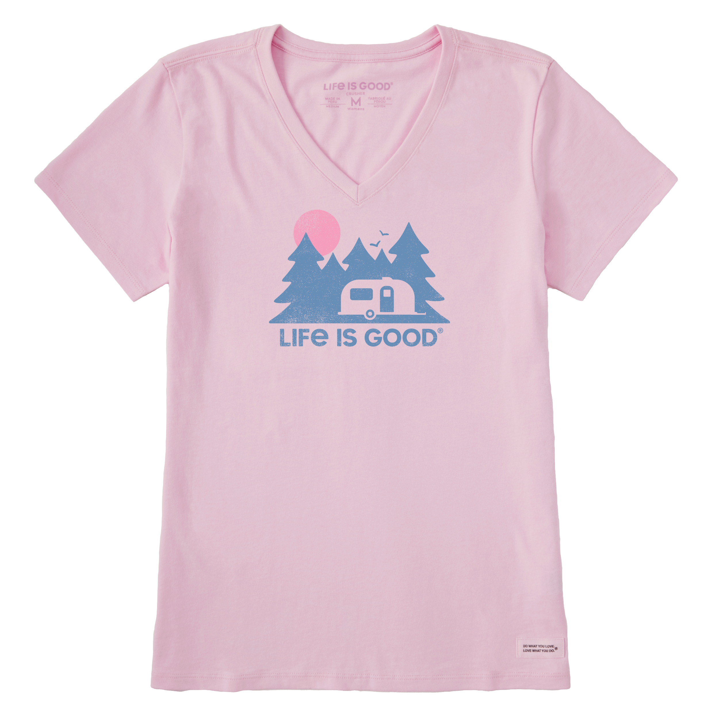Embrace the great outdoors in this cheerful Airstream Forest Crusher V-Neck Tee from Life is Good®. Crafted with a soft, comfortable fit and classic Life is Good® optimism, this tee celebrates the freedom of the open road and nature's beauty. Perfect for road-trippers, camping enthusiasts, and anyone who loves the Airstream lifestyle. The relaxed v-neck design pairs effortlessly with your favorite jeans or shorts for laid-back adventures. Wear it proudly and spread good vibes wherever your travels take you.