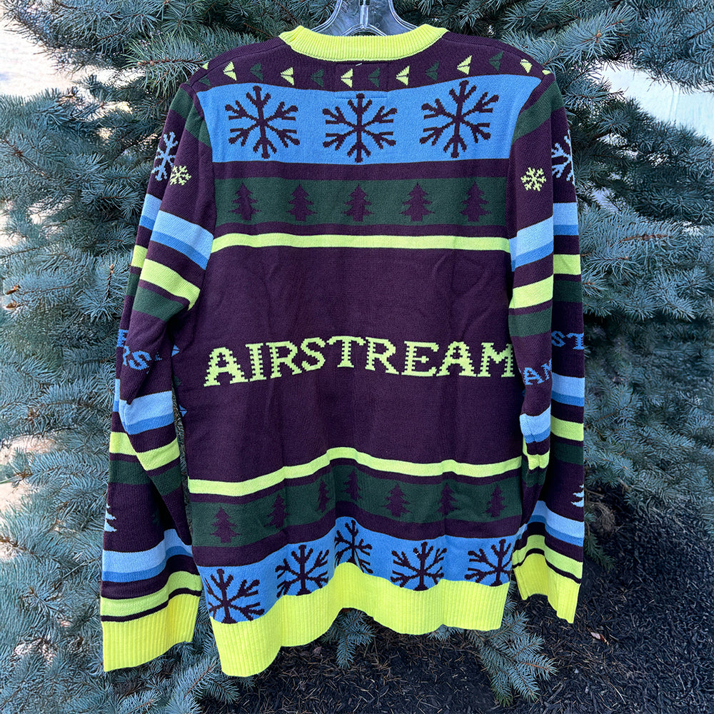 Cozy up this holiday season with a sweater that celebrates your love of the open road! This festive Airstream-themed pullover features a cheeky "Mistle Tow" design complete with an iconic travel trailer graphic. Perfect for Airstream enthusiasts and road-trippers who want to spread seasonal cheer with a twist of wanderlust. Whether you're gathering around the campfire or heading to holiday parties, this playful knit keeps you warm while showing off your adventurous spirit. A must-have for anyone who'd rather be hitching up and hitting the highway!
