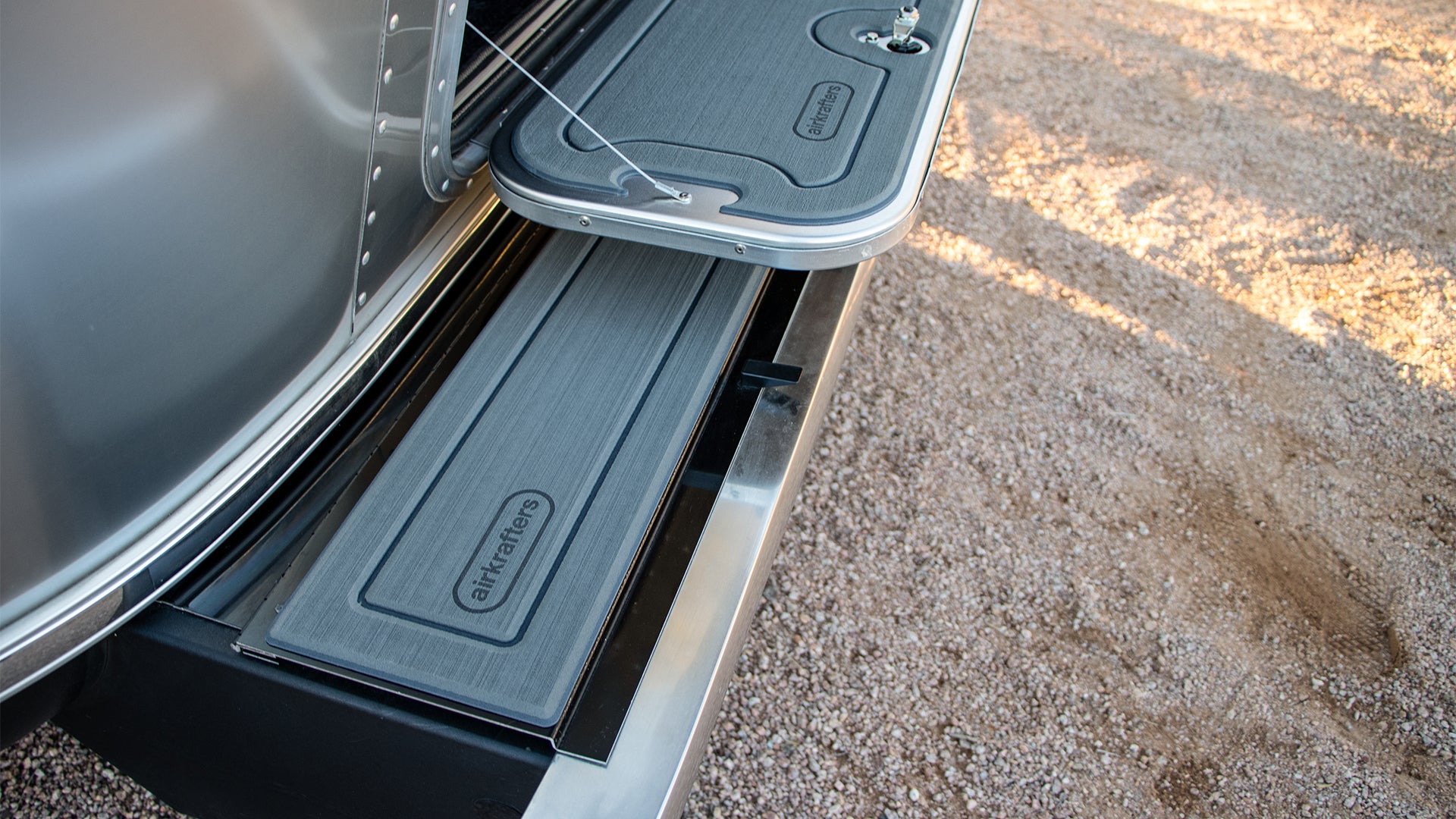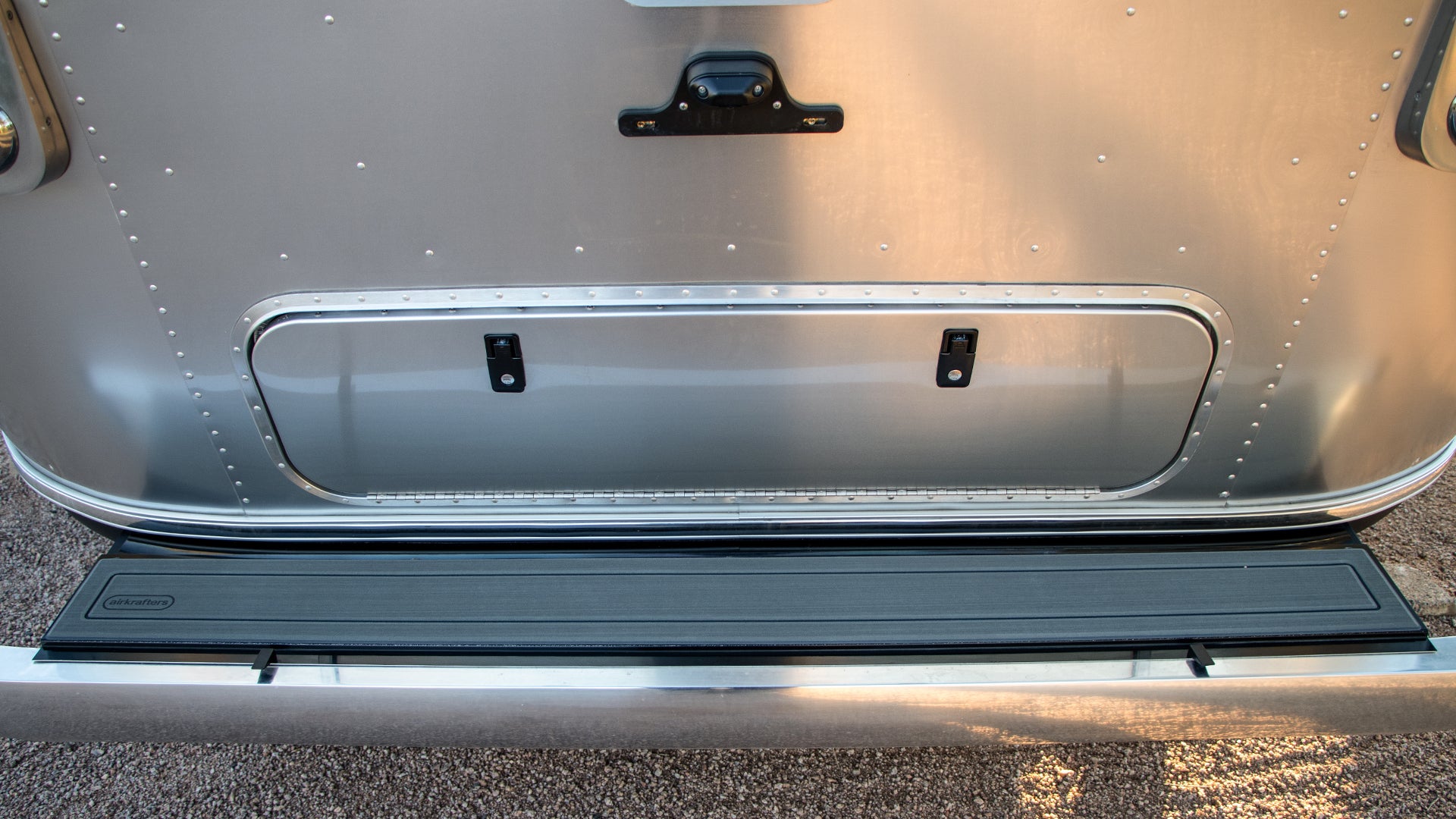 Add a cushioned surface to your Airstream travel trailer's back bumper with the bumpMAT protective mat from Airkrafters. The bumpMAT features a simple peel and stick application that attaches quickly and easily to your trailer's back bumper storage lid.