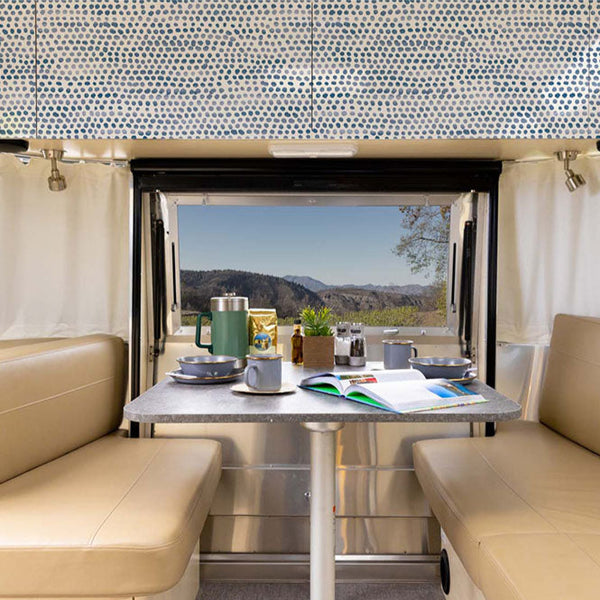 Versatile and subtly textural, our best-selling Moire Dots peel and stick wallpaper is a perfect fit for Airstream interiors—adding gentle pattern, depth, and dimension without overwhelming your space. Its neutral tones and understated design complement a wide range of styles, from vintage to coastal to minimalist modern. Ideal for walls, overhead cabinets, dinette surrounds, or even ceilings, this easy-to-apply, removable wallpaper brings timeless character with a lightweight touch.
